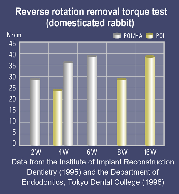 The results of the reverse rotation removal torque test suggests early osseointegration of HA-coated implants, and the calculated percentage of the bone-to-implant contact area was higher in HA-coated implants. The SEM image confirmed good osseointegration between the HA coating layer and highly calcified newly formed bone.